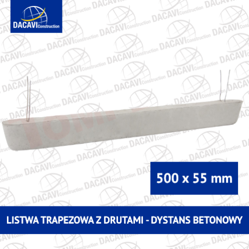 Dystans betonowy w kształcie trapezu z drutami.